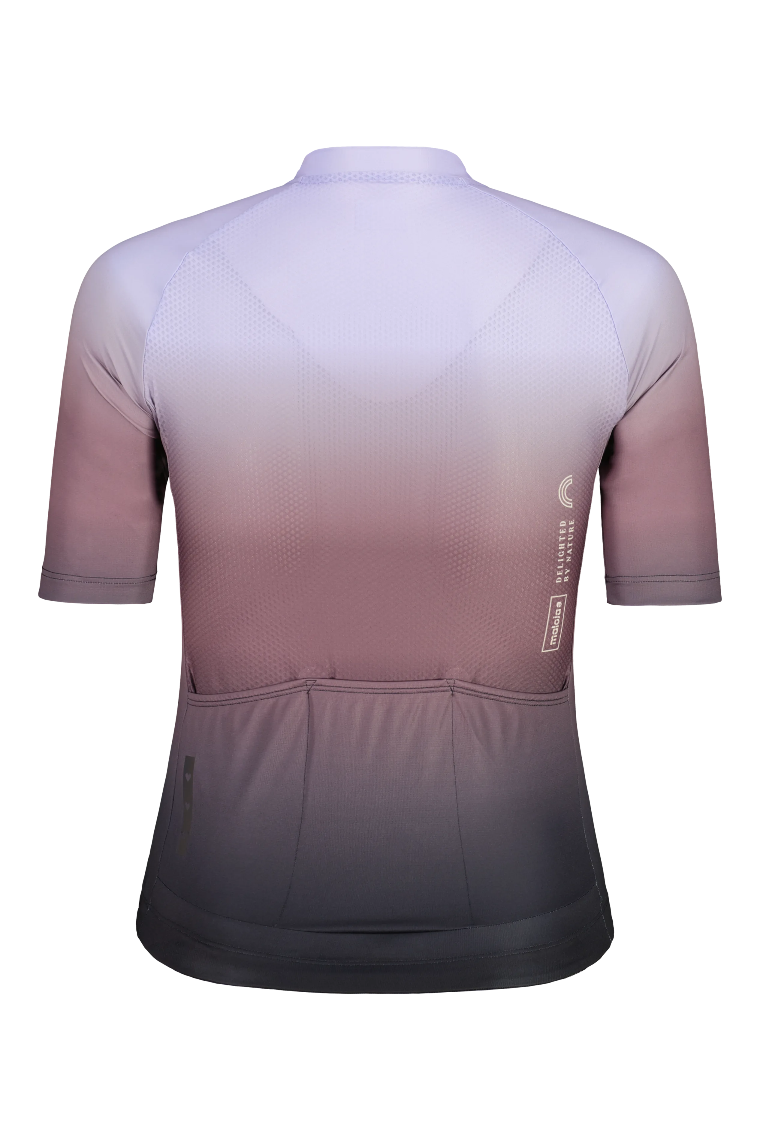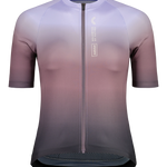 Slim Fit Damen-Jersey aus recyceltem Pushlite Rib ECO, mit Rückentaschen, Belüftung und reflektierenden Details. Farbverlauf & Bloom Print. Ideal für Road & Gravel.