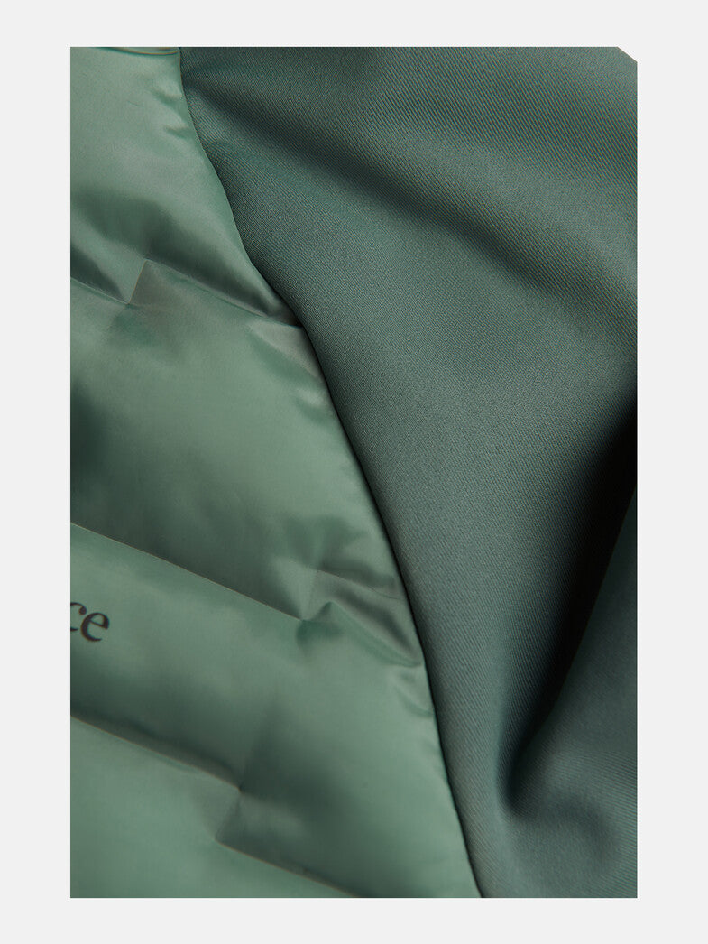 Diese superleichte Hybrid-Linerjacke ist perfekt für eine Vielzahl von Outdoor-Aktivitäten. Das Vorderteil ist wattiert und das Rückenteil besteht aus gewebten Steppbahnen für verbesserten Schutz vor Wind und Nässe. Die dehnbaren seitlichen Einsätze und Ärmel aus Jersey bieten zusätzlichen Komfort und Bewegungsfreiheit, ohne aufzutragen. Die Jacke ist komprimierbar und kann daher problemlos mitgenommen werden. Aus recycelten Materialien.